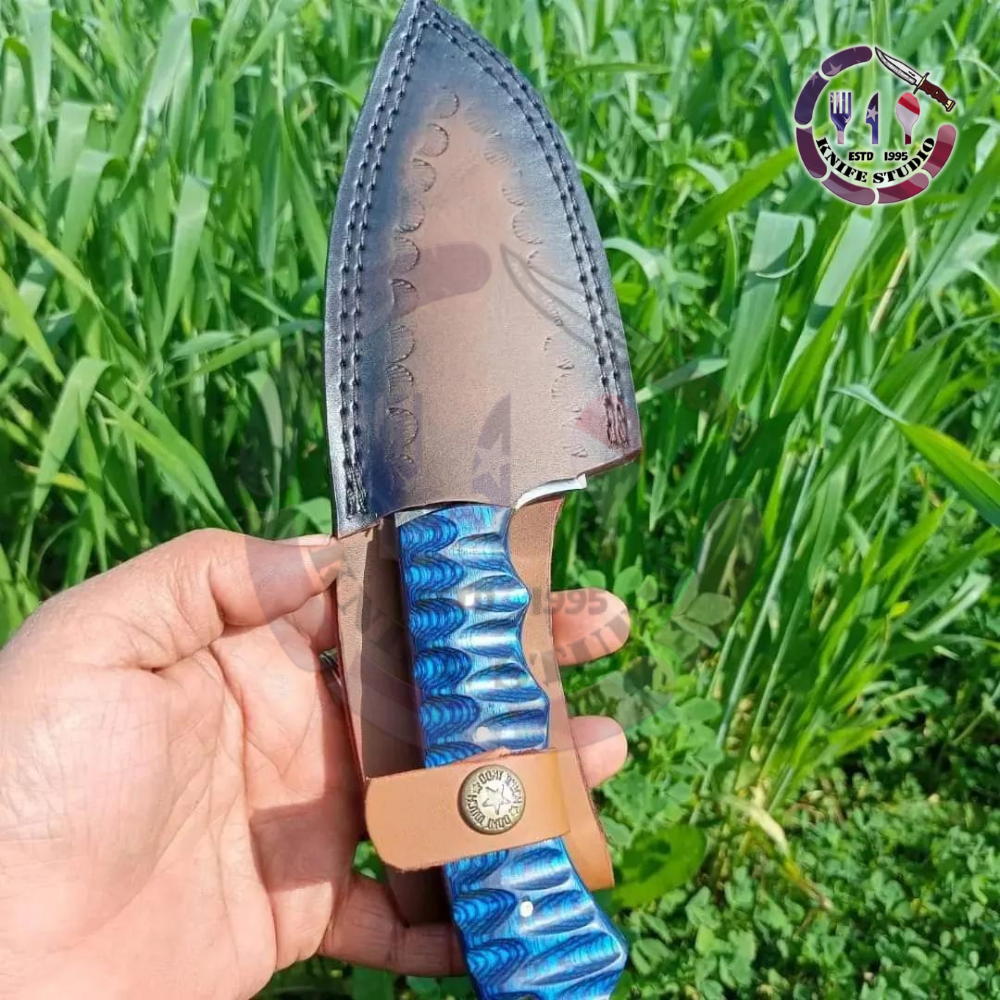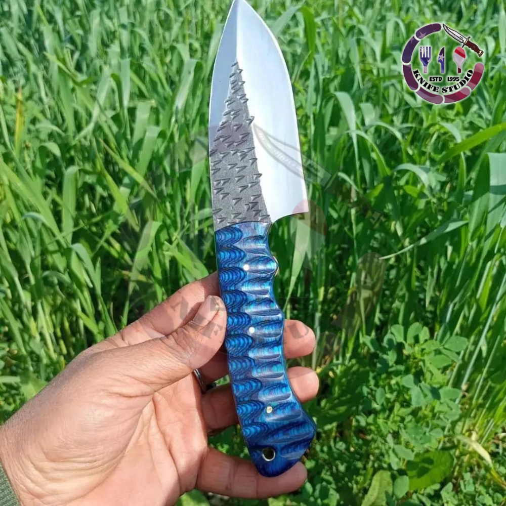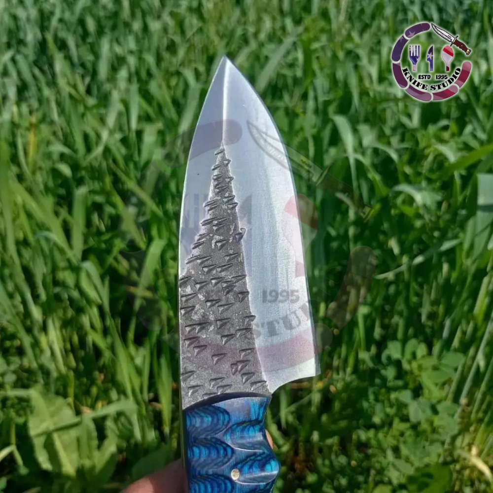 Master the outdoors with this rugged 10-inch Custom Hand-Forged Tracker Knife. Engineered for serious survivalists and outdoor enthusiasts, the blade is crafted from premium high carbon steel, featuring a unique hand-forged texture along the spine that showcases its authentic craftsmanship.