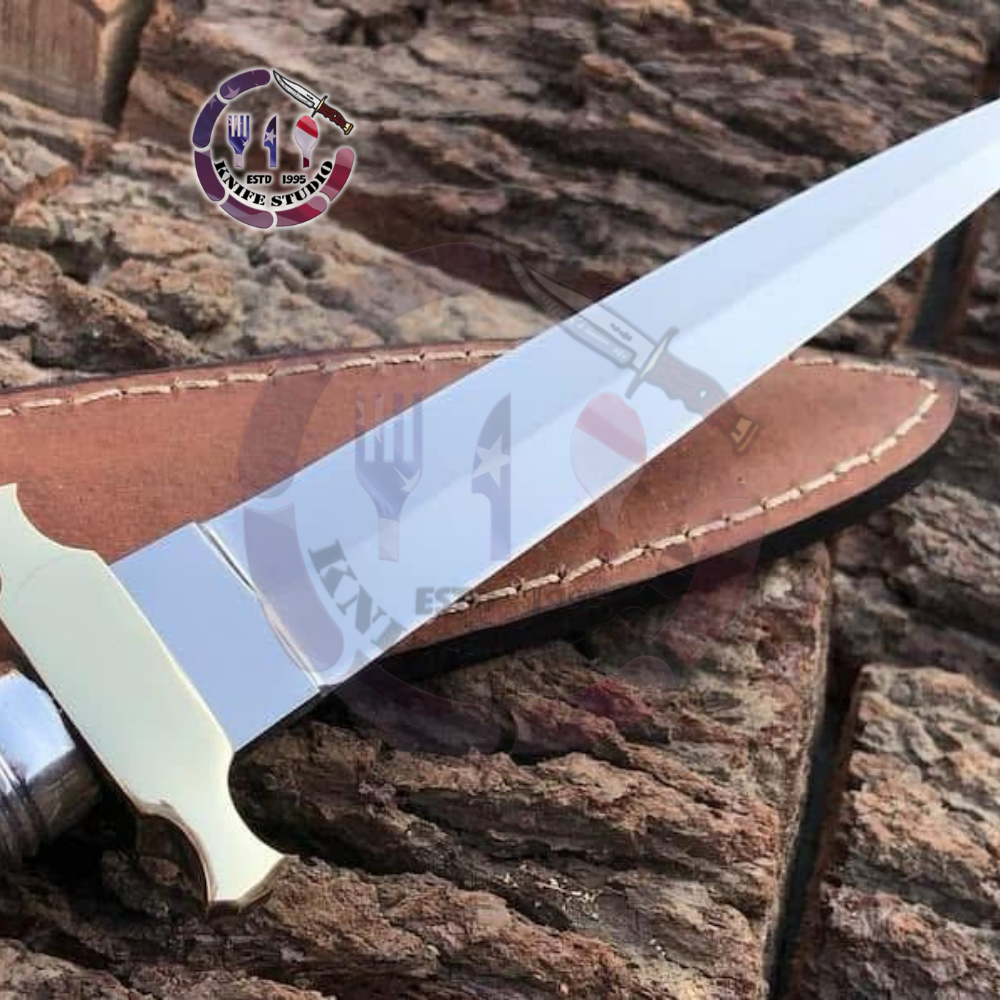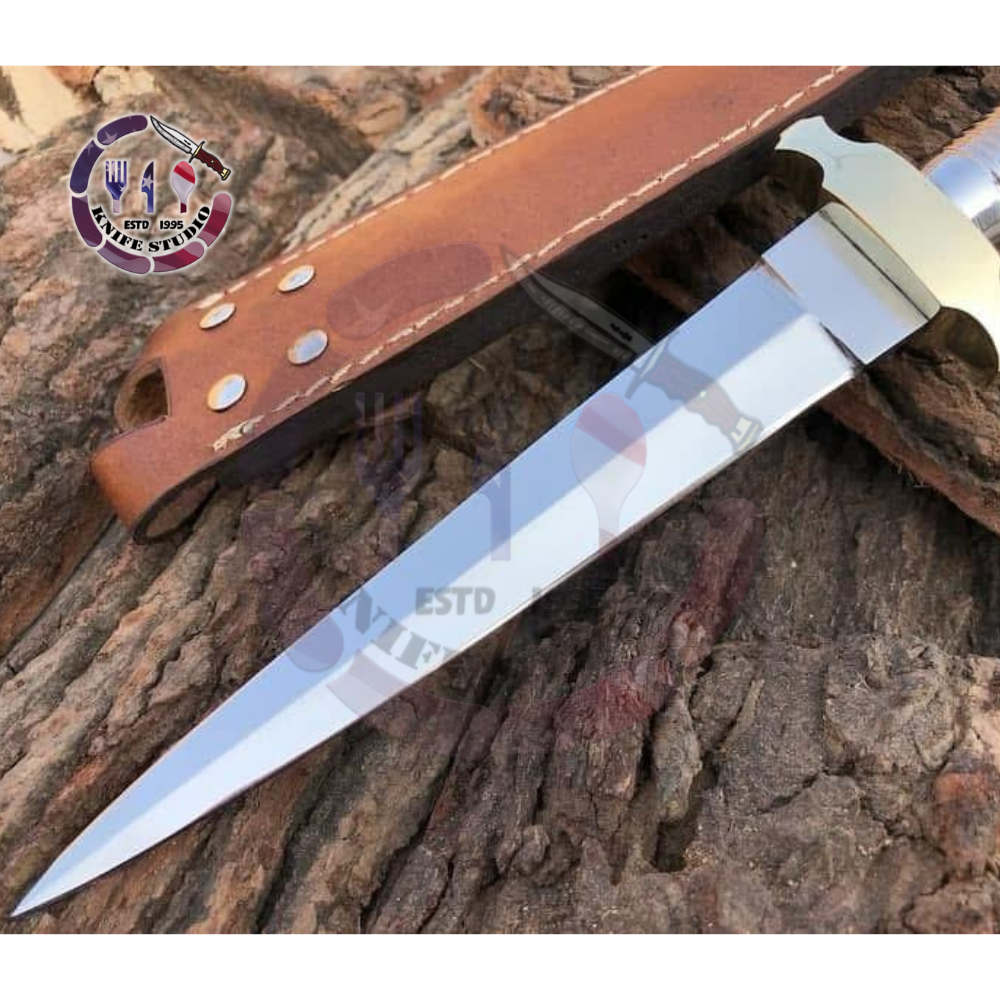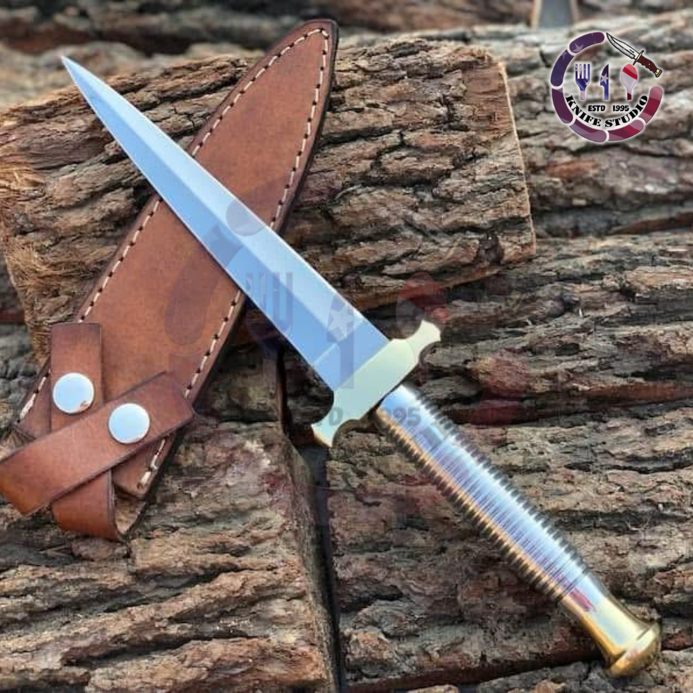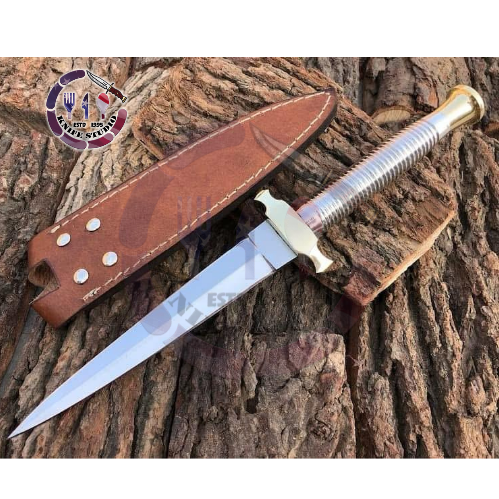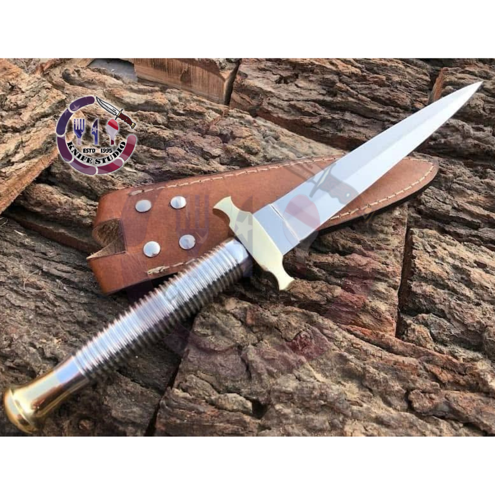 Add a classic military-inspired masterpiece to your collection with this 13-inch Custom Hand-Forged Fighting Dagger. Modeled after the iconic Fairbairn-Sykes silhouette, this dagger is designed for precision, balance, and tactical elegance. The slender, needle-point blade is meticulously forged from high carbon steel and polished to a brilliant shine, ensuring both lethal sharpness and a professional look.